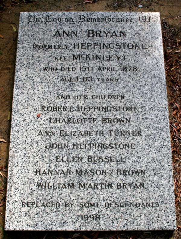 *Records have since come to light that Robert Heppingstone Sr. was married twice. His first wife, neé Agnes McKinley, was the mother of Robert Jr. and Charlotte. His second wife, memorialized here, was born Mary Ann McKillar.