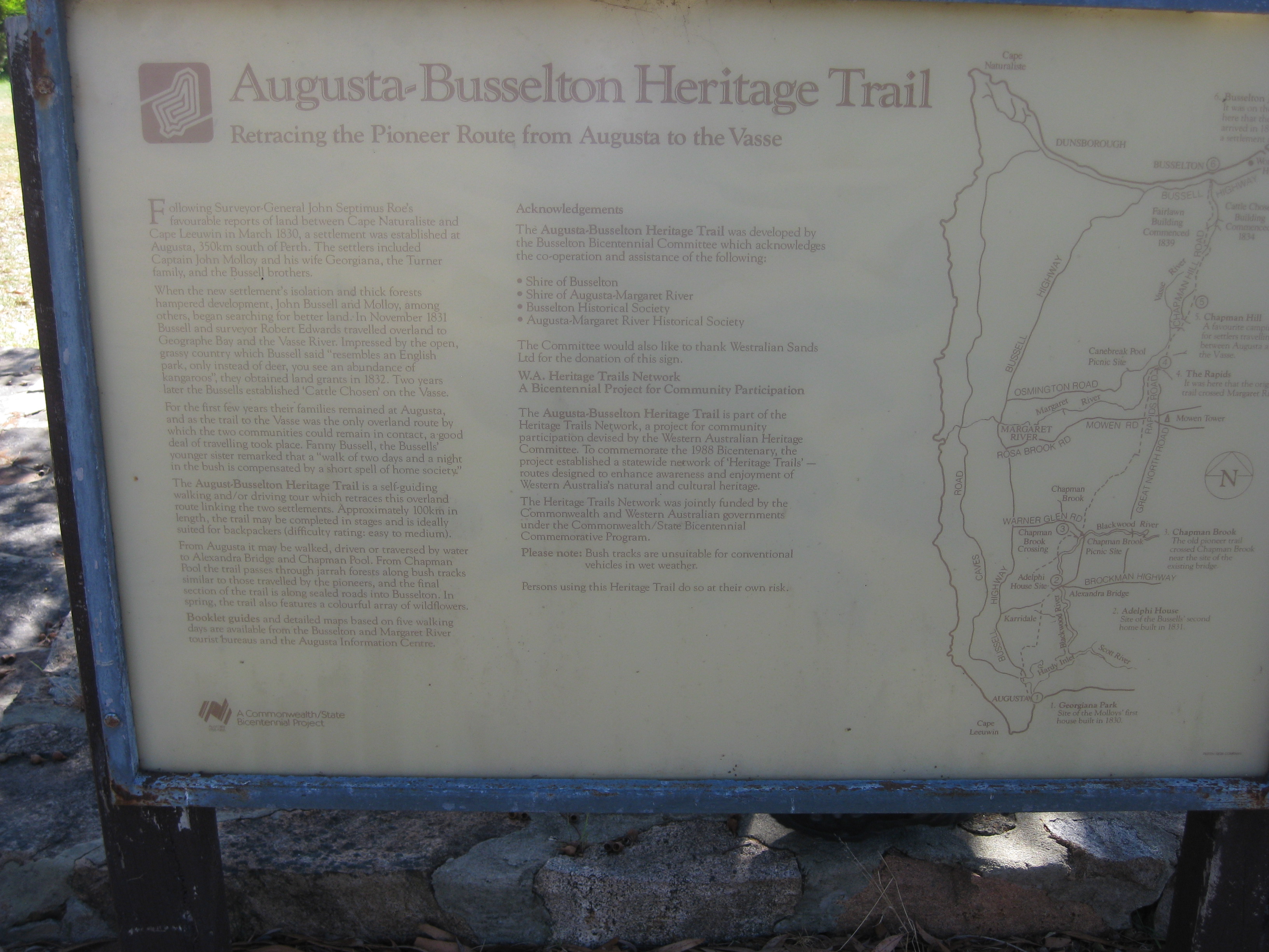 The area around Augusta is thick with karri and jarrah trees, which the settlers initially thought indicated promising timber and agricultural land.