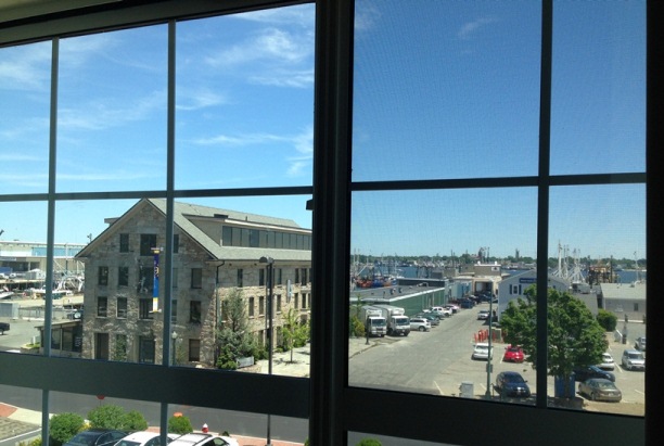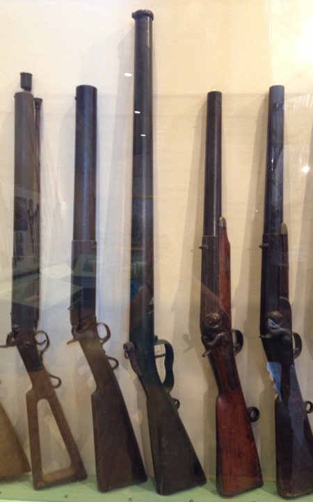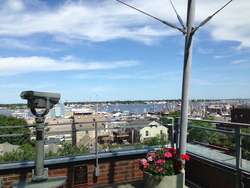 The thing I hadn’t anticipated (and probably should have), but was delighted to see in the corner of the hall that holds the scale Lagoda whaling ship was a case of early whaling guns, including one designed and patented in 1850 by our very own Captain Robert Brown. It was clearly heavier and longer than any of the others; I wonder if that means anything… There’s an observation deck on the upper floor of the museum, which provides a lovely view of the harbor. Unfortunately, buildings obscure the docks, but we could still make out trees on the Morgan beyond the exhibition hall on the pier, and in front of her New Bedford boats still comprise the largest fishing fleet in the country. Again, we come full circle.