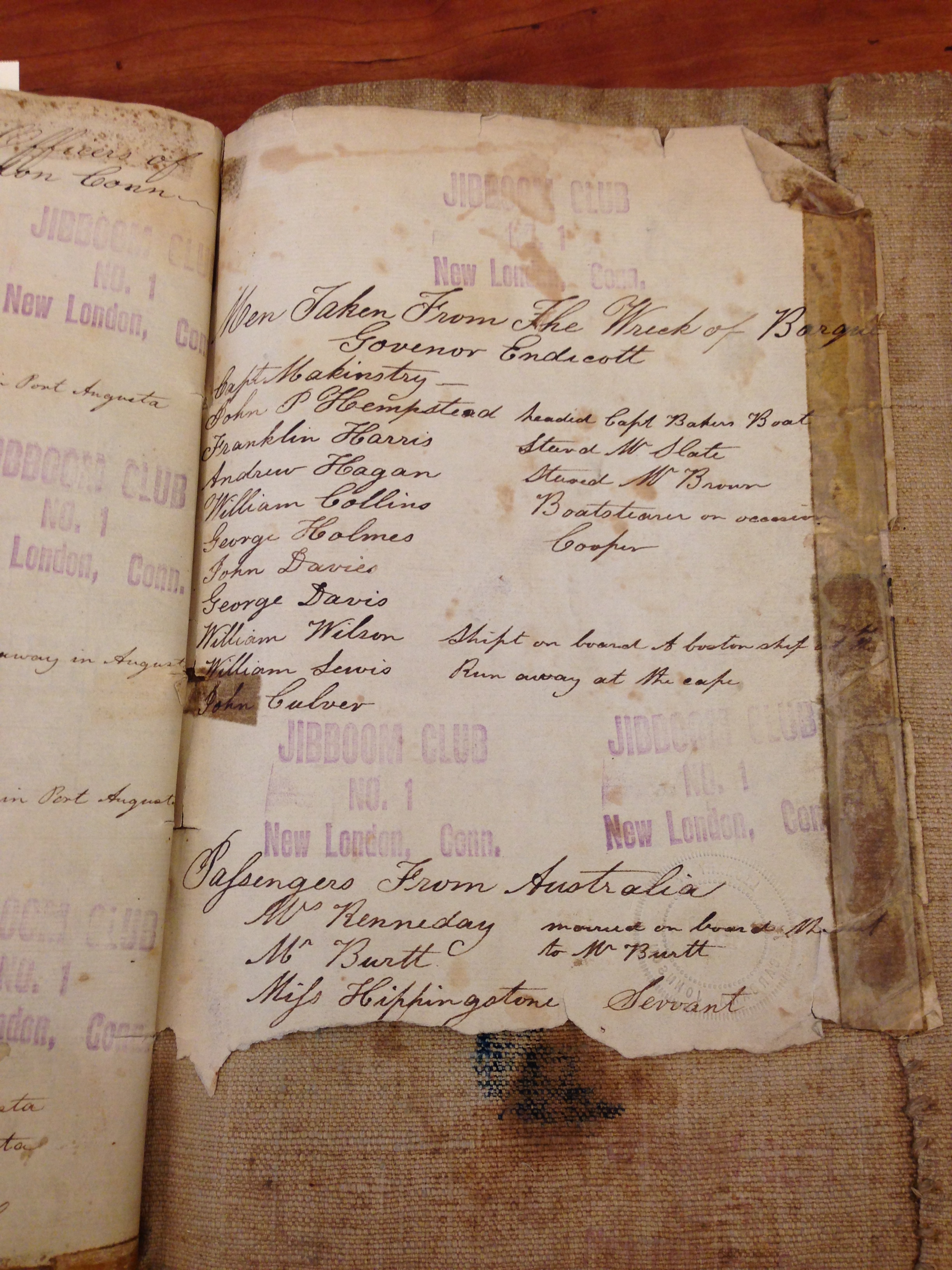 The real surprise was finding not one, but two logs from Navy’s 1859-61 voyage during which our Nelson Cole Haley sailed as first mate. One log was kept by Captain Andrew Sarvent, and the second by Haley, himself. Haley and Sarvent started as greenhands about the same time and worked their way up through the ranks on various whaling vessels, but it would seem the two gentlemen were not great friends. It’s interesting to note their varying perspectives in describing the same events. At any rate, the revelation here is that clearly Haley and Sarvent quarreled, which resulted in Haley being “discharged before the Consul at the port of Hilo” in November of 1861. Thus, another family myth is debunked—unless the shipboard accident from which we always thought he was left to recover was nothing more than a slip of the tongue?