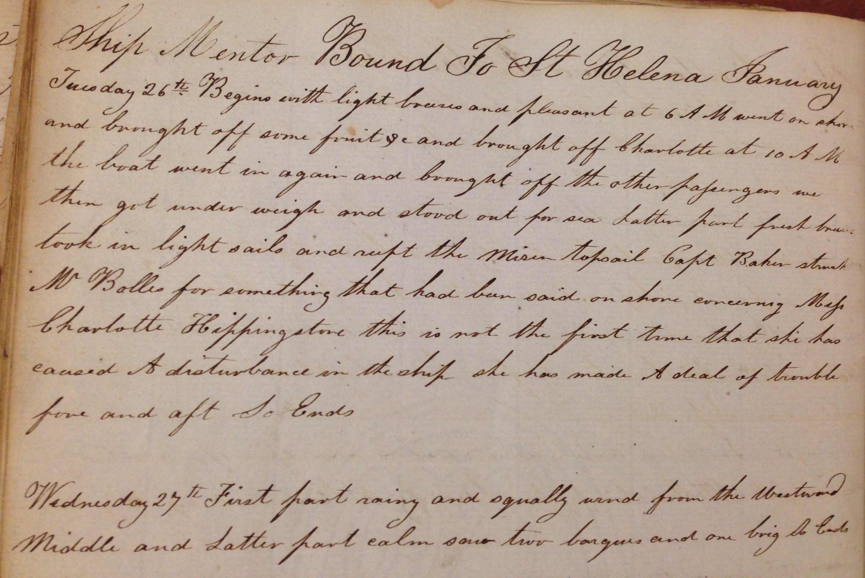 The biggest treat was browsing through the pages of James Rogers’s log of the Mentor voyage during which our Robert and Charlotte met. Who’d have thought a crusty ol’ sailor would have such lovely penmanship! Somehow it seemed more real than the abridged published version. And an extra set of eyes on the text suggested the perfect title for Charlotte’s biography… how does A Deal of Trouble sound?