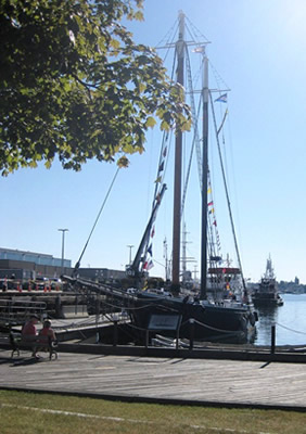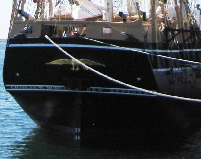 There was actually less to see on this tour than we were accustomed to, since so much of the ship was cordoned off to keep punters away from working rigging and crew quarters. The picture of Nelson and Charlotte Haley that always hung below on a bulkhead in the main cabin wasn’t there [insert Glynis Johns’s line from movie The Ref, “Why isn’t my portrait over the fireplace?”]. Nobody on board seemed to know who Haley was—clearly an oversight—but as long as they don’t sink the boat, I suppose we can forgive them.
