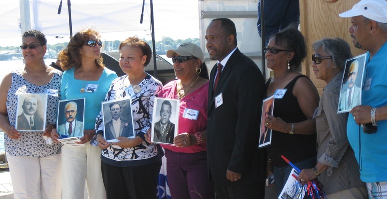 The other thing that hit home with us was the diversity in the crowd of people whose heritage is so deeply entwined with the 19th century whaling industry. We focus so much on our own Yankee whalemen and the exotic ports they visited, that it’s easy to overlook their influence on people they met along the way. Sure, we all know whaling ships commonly visited the Azores, Pacific islands, and such places, and we’ve seen exotic names in the crew lists, but we don’t often stop to think about those people and how their lives were changed when the whalers came to town or how many of them came to America on whaling ships. Indeed, the changes made to the faces of New Bedford by this exchange of crew are event to this day with Portuguese and Cape Verdean names making up nearly half the city’s population. And they were out in en masse to welcome the Morgan home, including a group of Cape Verdeans whose forefathers were part of her crew. Among them were descendants of John Gonsalves, a Cape Verdean who served as master for the Morgan’s last whaling voyage.