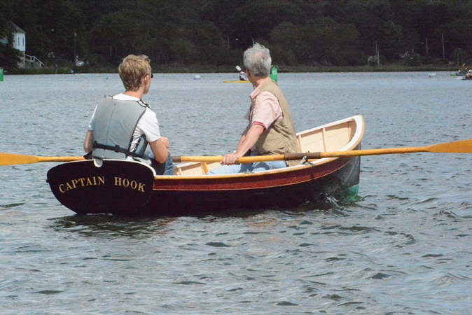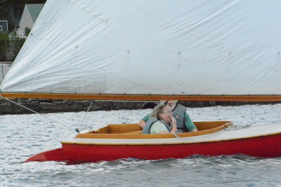 The seaport has a fleet of rental boats in various shapes and sizes. A few folks opted for rowboats, from which they could watch the “race” (and I use the term very loosely). A few more hopped aboard Breck Marshall, a 20-foot catboat that the seaport uses to take folks out for sailboat rides with a professional sailor at the helm. And our official photographer snagged a ride in the committee boat. In all, nearly everyone got out on the water in one craft or other. |