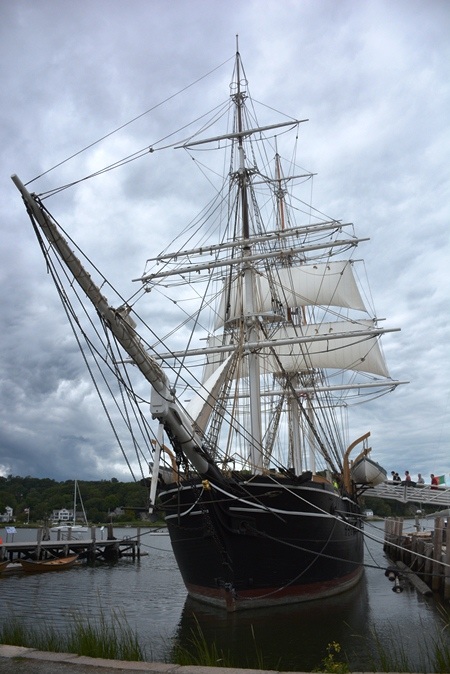 | The Charles W. Morgan is the last of her kind and the crown jewel of Mystic Seaport. She just came through an extensive restoration, which made her seaworthy for the first time in nearly a century. Her “38th Voyage”, which was about history rather than whale oil, concluded earlier in August, so she was back in her regular berth waiting to greet us. |