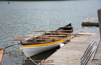 This isn’t your ordinary rowboat experience. Depending on their position in the boat, the oars are 15 to 17 feet long, while the steering oar is 21 feet long, and they’re easily as big around as your forearm. These are some big oars, but –being made of spruce–remarkably light for their size.