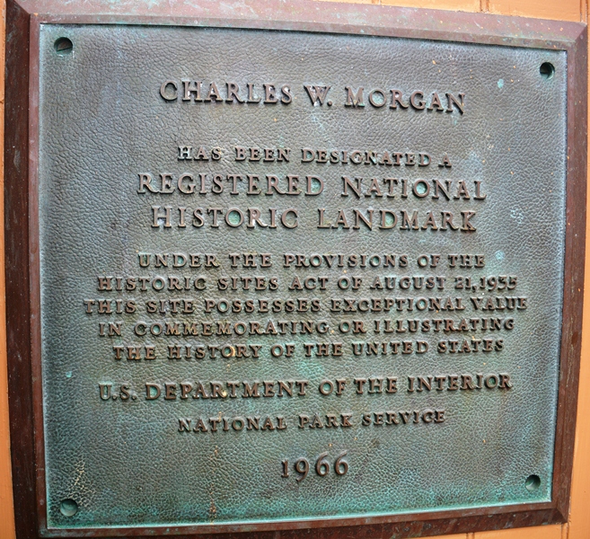 This plaque is on the Wendell building, now home to the seaport’s collection of ships’ carvings and figureheads, and a regular venue for musical performances. |