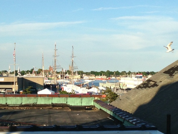 We lucked out on the hotel. Fortunately, the DWM had the forethought to reserve a block of rooms across the street from the state pier, so we could park the car for the weekend and walk just about everywhere we wanted to go. Great! We’re right across the street from the pier… with a handsome old stone building precisely blocking our view of the ship … oh well.