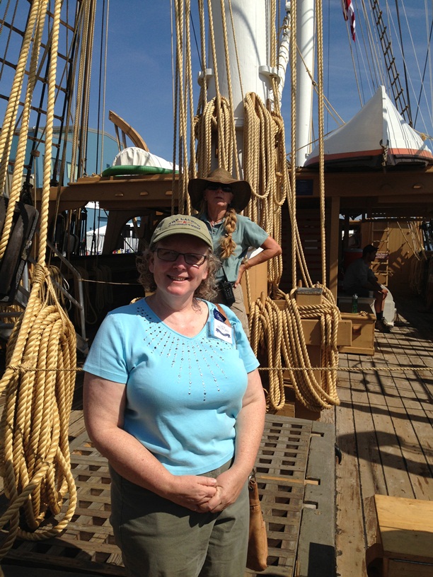 There was actually less to see on this tour than we were accustomed to, since so much of the ship was cordoned off to keep punters away from working rigging and crew quarters. The picture of Nelson and Charlotte Haley that always hung below on a bulkhead in the main cabin wasn’t there [insert Glynis Johns’s line from movie The Ref, “Why isn’t my portrait over the fireplace?”]. Nobody on board seemed to know who Haley was—clearly an oversight—but as long as they don’t sink the boat, I suppose we can forgive them.