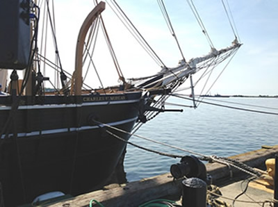 The end of June, 2014, after an absence of 73 years, the Charles W. Morgan returned to her original home port of New Bedford, Massachusetts, and my head is still spinning. We traveled down to attend the weekend homecoming festivities. Our agenda included the opening ceremony on Saturday, a tour of the ship, visits to the New Bedford Whaling Museum and Seamen’s Bethel, and the annual luncheon meeting of the Descendants of Whaling Masters (DWM) on Sunday.