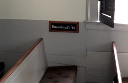 Eventually, it was time to head up hill again. We missed the service at the Seamen’s Bethel, but enjoyed touring the empty chapel anyway. A pew dedicated to Herman Melville (who really did attend a service here before he sailed away on Acushnet) is only one memento of the author’s visit. Despite the original pulpit being fairly ordinary, Melville’s impression was that “Its paneled front was in the likeness of a ship’s bluff bows, and the Holy Bible rested on a projecting piece of scroll work, fashioned after a ship’s fiddle-headed beak.” Faithful to the text, the chapel set for the 1956 movie starring Richard Basehart and Gregory Peck depicted the pulpit quite literally as the bow of a tiny ship and, in turn, sparked protests from tourists who expected to see it thus in the real chapel. Giving way to popular demand, the chapel curators rebuilt the pulpit in the movie’s image rather than perpetually explaining fictional overreach. It would seem Mr. Melville has much to answer for.