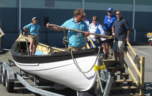 A bit more time touring exhibits on the pier, Spouter, the inflatable whale, murals and various demonstration booths in the exhibition hall, and a few too many souvenirs? (Well, never enough, really.) On the pier, visitors could climb aboard a whaling boat and imagine their own Nantucket sleigh ride — imagine being key, as this boat was on a trailer. However, the rest of the ship’a boats were, indeed, in the water waiting to take imaginative souls with willing backs out on the water. The rides were free as long as you contributed muscle to the forward motion. Alas, timing didn’t work for us, but plenty of other folks took to the oars. |