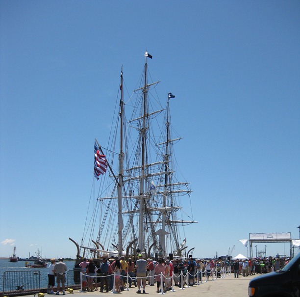 We heard something over 3,000 people turned up to visit her on Saturday morning. Standing back to let the crowd have the deck, we headed for lunch. Behind us in line at the hot dog stand was none other than Captain Kip Files–obviously we couldn’t let him buy his own meal (honestly, that’s all we intended, we didn’t mean to shanghai him, really!), and he ended up sitting down to eat with us. I would post the picture, but someone with a camera who will remain nameless got a shot with the captain stuffing a hot dog in his mouth and not particularly flattering to anybody else in the picture either, so we’ll just skip that one. Anyway, he’s a charming character, but more on the gallant captain a bit later.