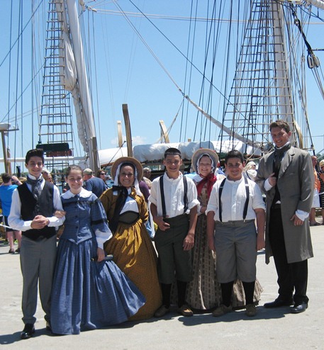 The other thing that hit home with us was the diversity in the crowd of people whose heritage is so deeply entwined with the 19th century whaling industry. We focus so much on our own Yankee whalemen and the exotic ports they visited, that it’s easy to overlook their influence on people they met along the way. Sure, we all know whaling ships commonly visited the Azores, Pacific islands, and such places, and we’ve seen exotic names in the crew lists, but we don’t often stop to think about those people and how their lives were changed when the whalers came to town or how many of them came to America on whaling ships. Indeed, the changes made to the faces of New Bedford by this exchange of crew are event to this day with Portuguese and Cape Verdean names making up nearly half the city’s population. And they were out in en masse to welcome the Morgan home, including a group of Cape Verdeans whose forefathers were part of her crew. Among them were descendants of John Gonsalves, a Cape Verdean who served as master for the Morgan’s last whaling voyage.