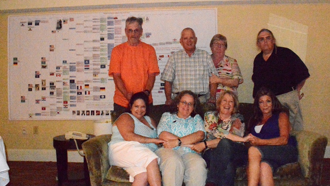 Friday night, arrival at the hotel. Among the descendants, we had rabble-rouser-in-chief Louise, who dragged her husband and sons to the event. Ellen brought spouse and children. Rounding out the New England clan was John with his amazing camera. Also joining us from the east coast were Pete and Chris from Virginia. The west coast sent us sisters Holly and Christi from California, plus Roger and Tae who drove all the way from Washington. The prize for the for the greatest distance traveled goes to Anne who flew in all the way from Western Australia (and seems to be taking the long route home … we do hope she’ll get there safely one day). Most folks stayed at the Mystic Hilton, but even those who found other lodging managed to join us for a meet and greet in the hotel pub, which led to dinner, which led to more time for “talk story” in the hotel’s hospitality suite.