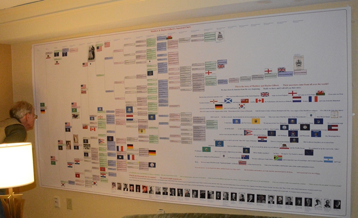 Roger brought a magnificent family tree, which occupied a full wall of the room, tracing something like 22 generations of the Haley lineage. |