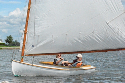 | While it looked simple enough, the single lap windward-leeward race was deceptively complicated. Catboats are wide with a relatively shallow draft and a single gaff-rig sail, ideal for fishing coastal waters, which was their original purpose. It also means they’re relatively easy to sail and very difficult to tip over, ideal (again) for sailors of varying skill levels in unfamiliar boats. |